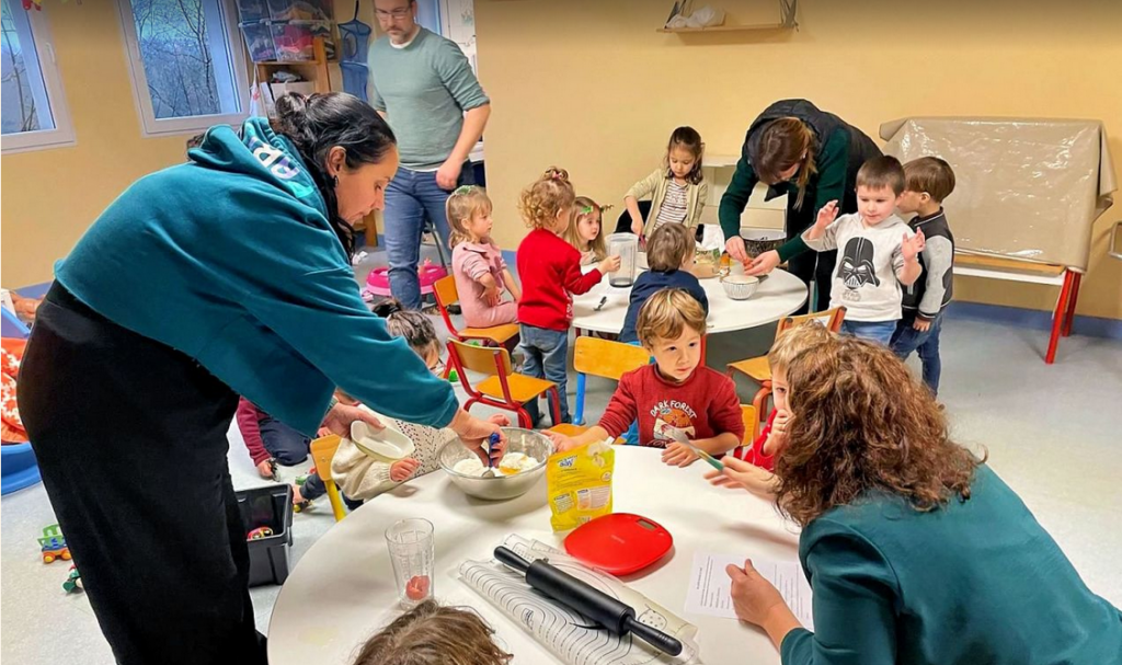 Les 3 classes de maternelle s’étaient données rendez-vous pour des ateliers de Noël : cuisine, création d’une carte de Noël et d’un bricolage.